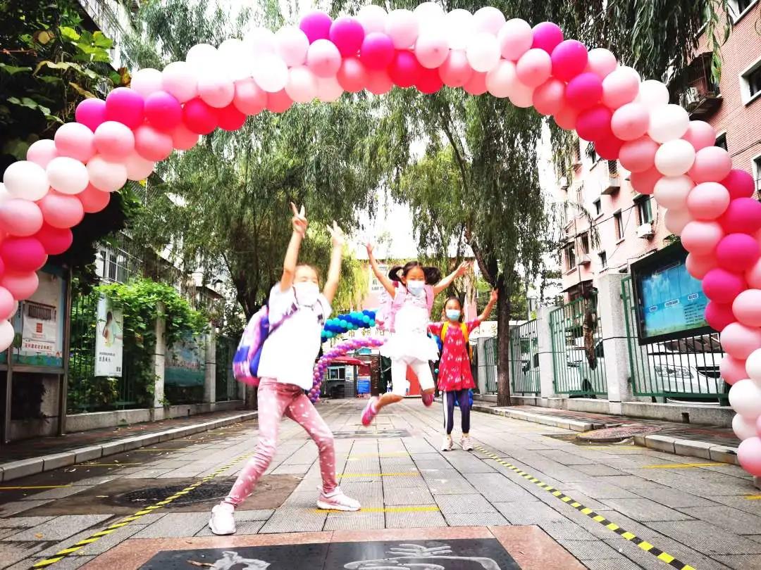 哇~三组色彩鲜艳的气球门迎接朝气蓬勃的小娃娃们!仪式感满满!太赞了!
