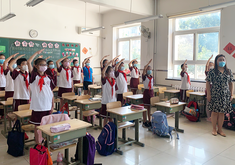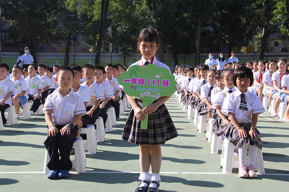 9月1日,北京市朝阳师范学校附属小学一、五、六年级近2000名学生欢聚在校园,开始新学期的学习生活。