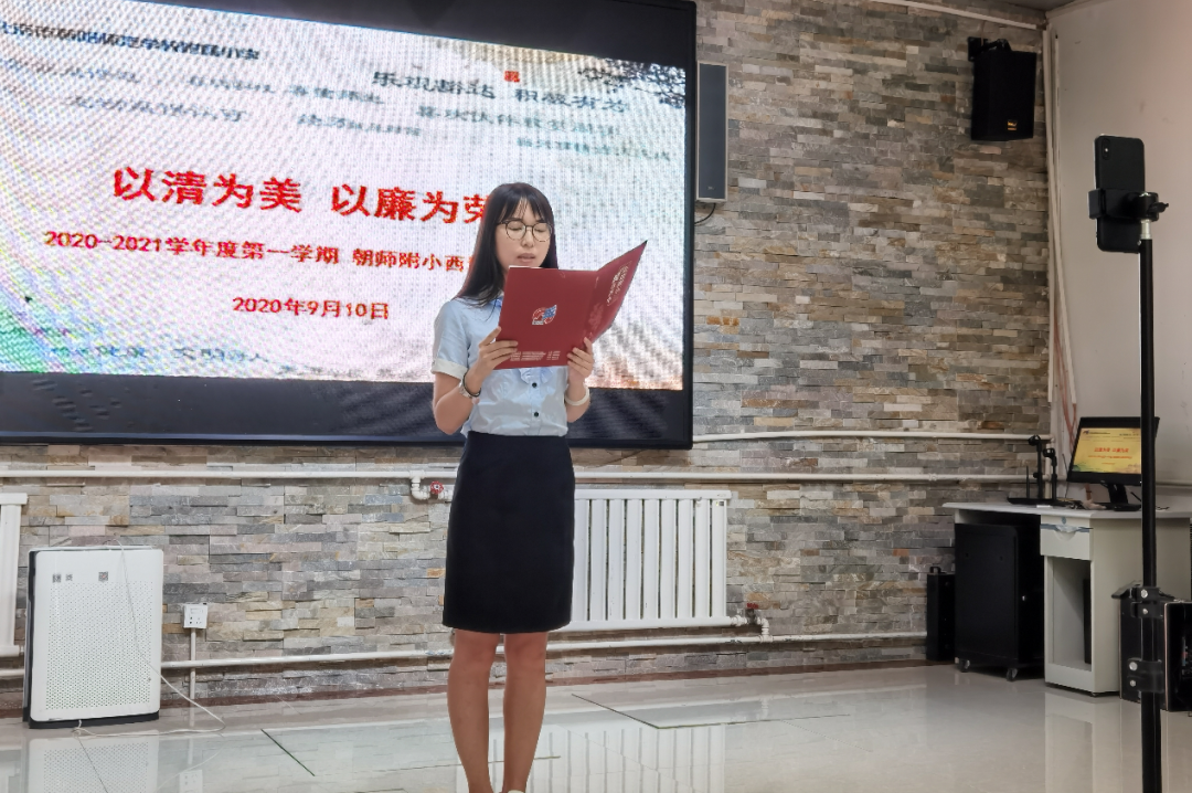 在第36个教师节中,朝师附小西坝河校区的党员老师们向全校发出廉洁倡议,全体党员老师用自身实际行动弘扬了附小教师主流价值观,并收获了为人师表的职业幸福。校园里都是对老师们的祝福,学校的各个角落都为老师亮起了节日祝福的语言——祝老师们节日快乐!
