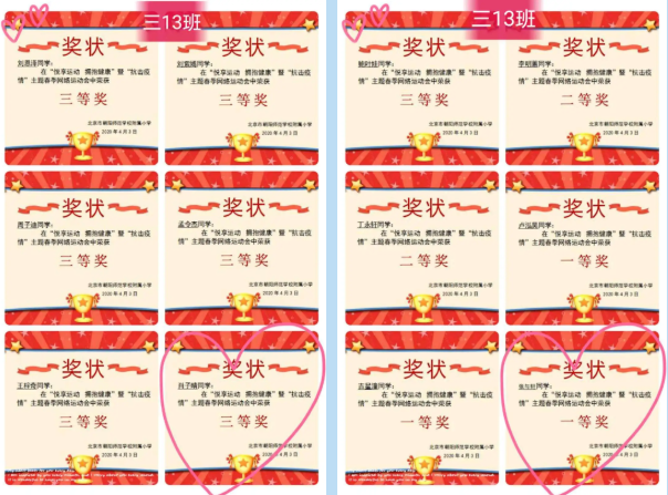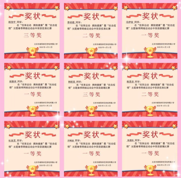 此次网络运动会,调动了学生的运动热情,促进了学生体能的提升,也增强了班级的凝聚力。相信西坝河的孩子们在坚持每日运动锻炼的锤炼下,必能铸就好的体质,为抗“疫”作出贡献!