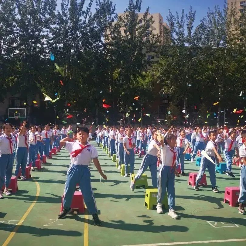 西坝河校区在“悦在国旗下”升旗仪式课程中,开启了新学期的学习生活。家长代表、法制副校长以及少先队员代表将五星红旗冉冉升起,庄严的国歌响彻校园。同学们带来了在家中精心准备的“彩色梦想纸飞机”,在倒计时“5-4-3-2-1”的报数声后,1021名学生向湛蓝的天空放飞自己的新学期梦想,承载着祝福与新学期愿望的彩色纸飞机,翱翔于校区的天空,在欢乐的氛围中,正式开启了新学期的新篇章。