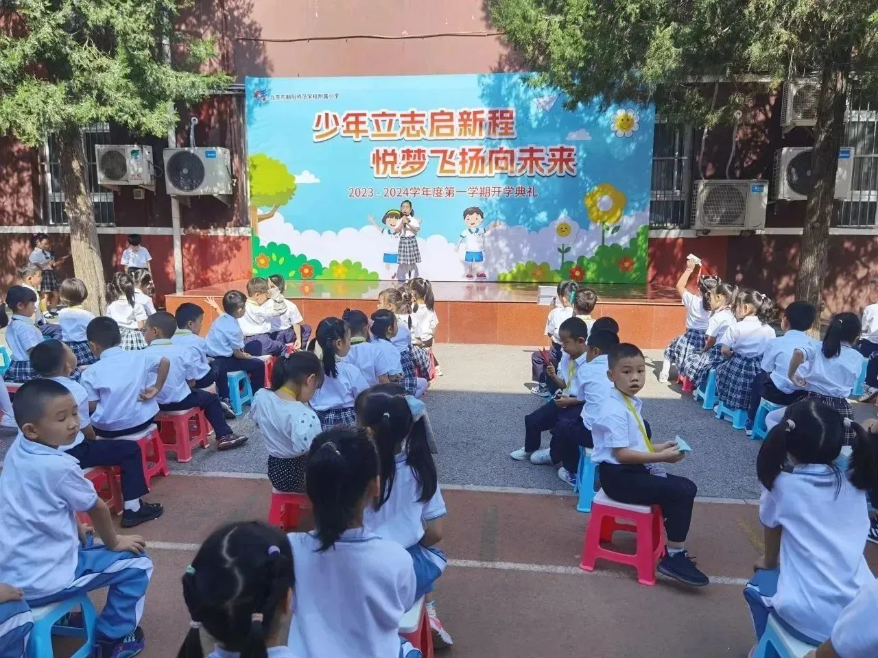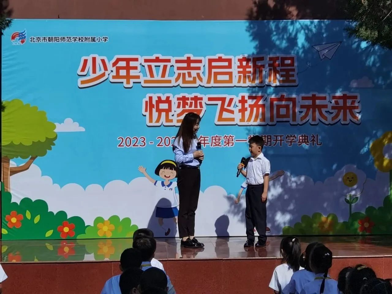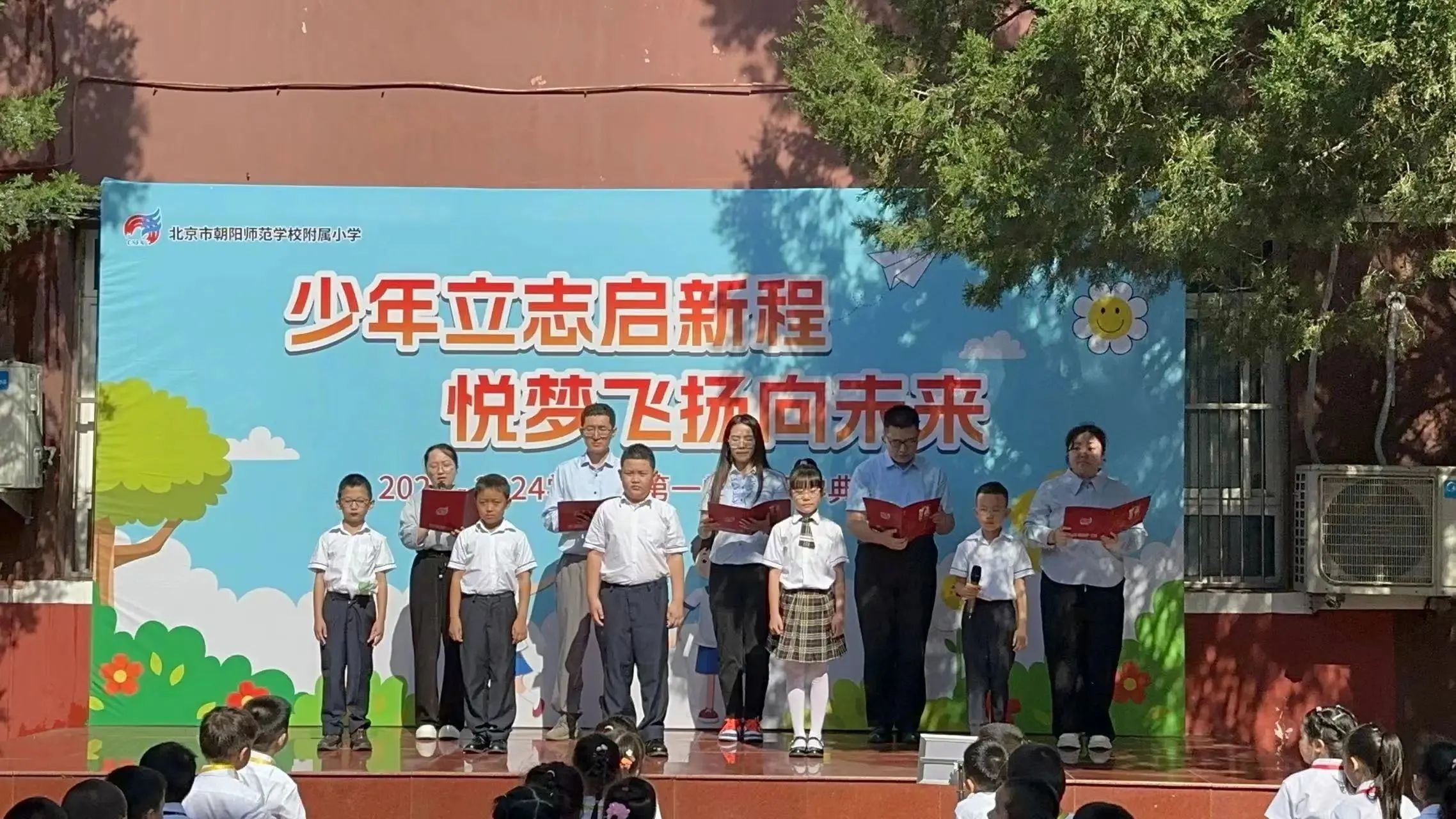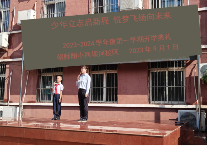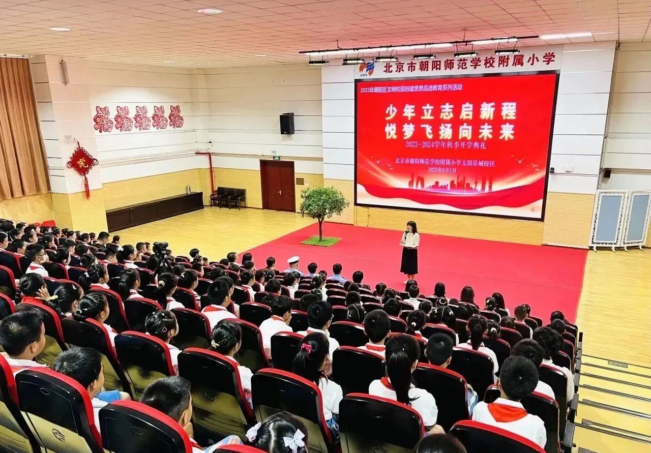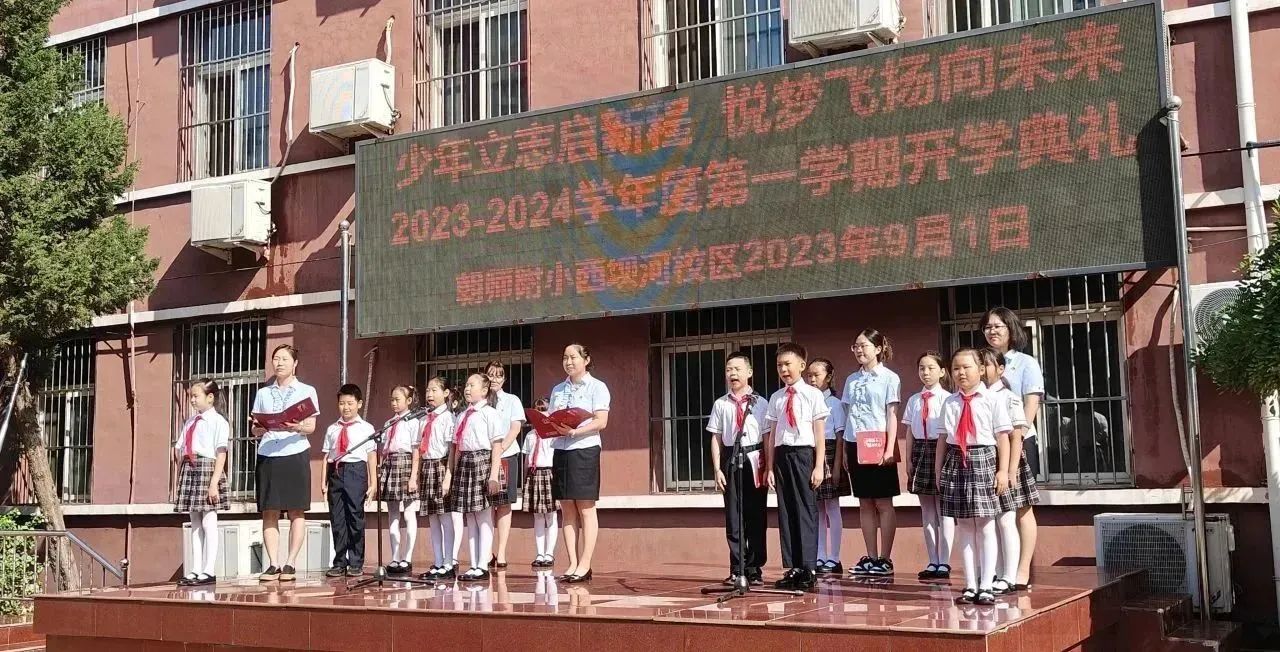 和平街校区召开了以“少年立志启新程 悦梦飞扬向未来”为主题的2023-2024学年第一学期开学典礼,朝师附小教育集团王红梅校长致辞。王校长给同学们带来四条新学期目标与行动建议:锻炼强健体魄、塑造美好心灵、课堂学好知识、课外增长见识……鼓励同学们一起加油,开启精彩新学年。师生代表抒发了对新学期的憧憬,快板表演表达了对祖国的热爱,一年级同学们还进行了好习惯儿歌手语展示,仪式感直接拉满~