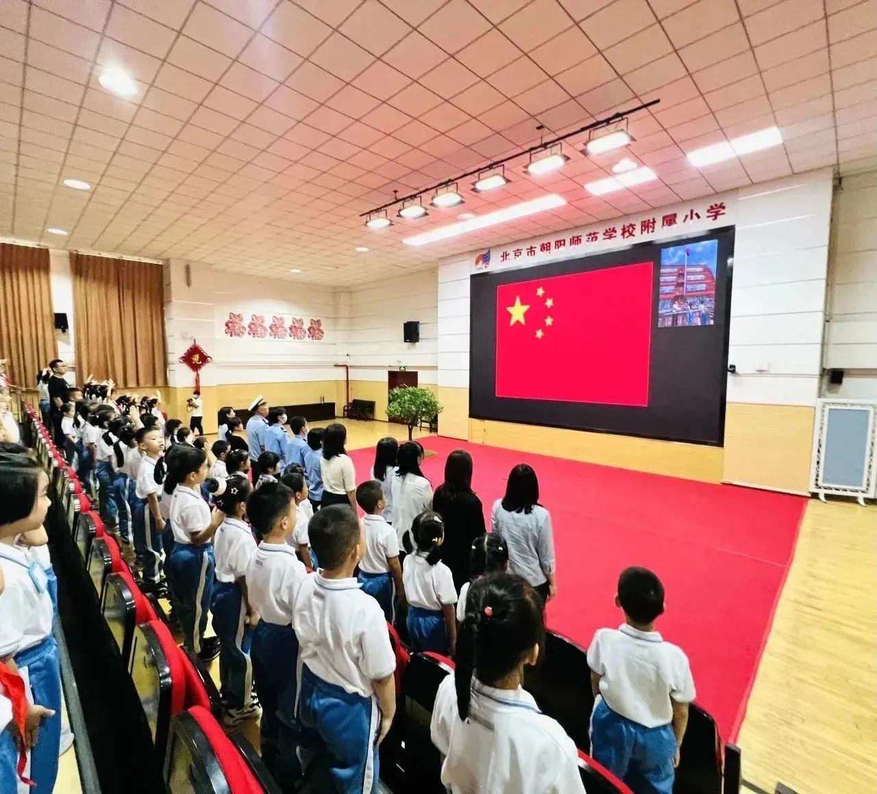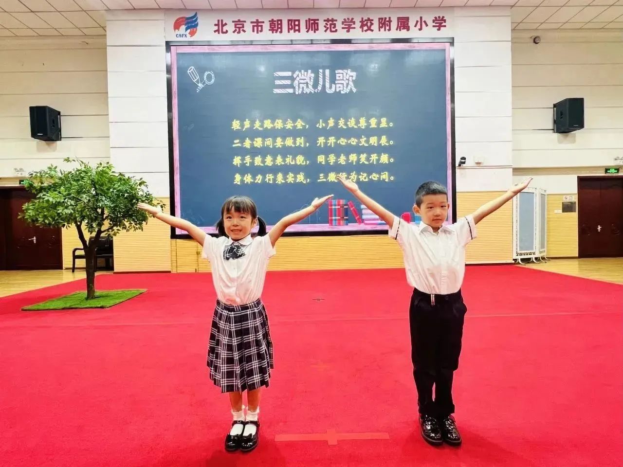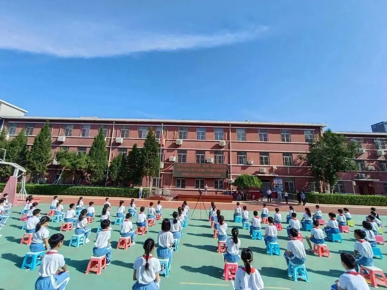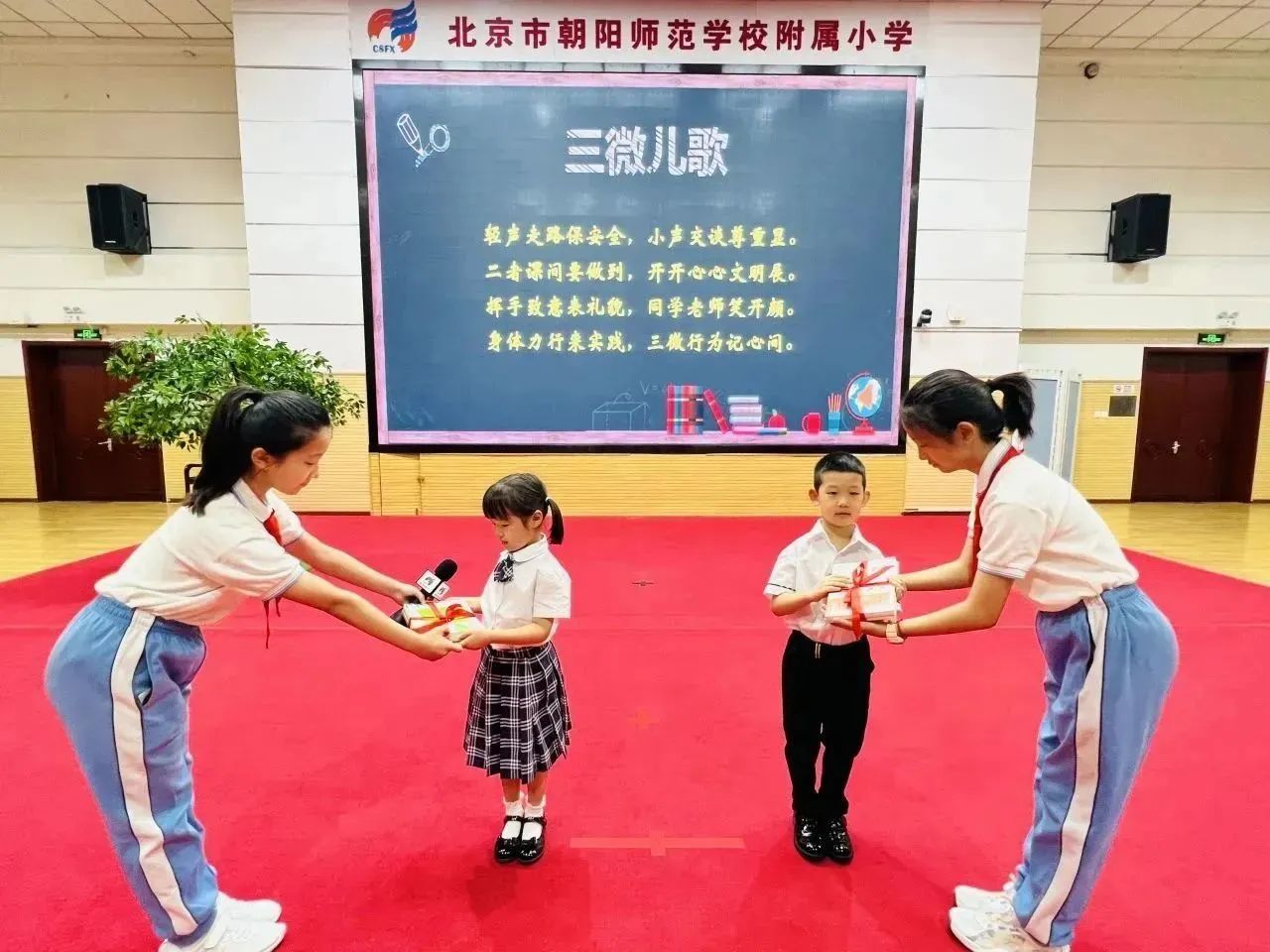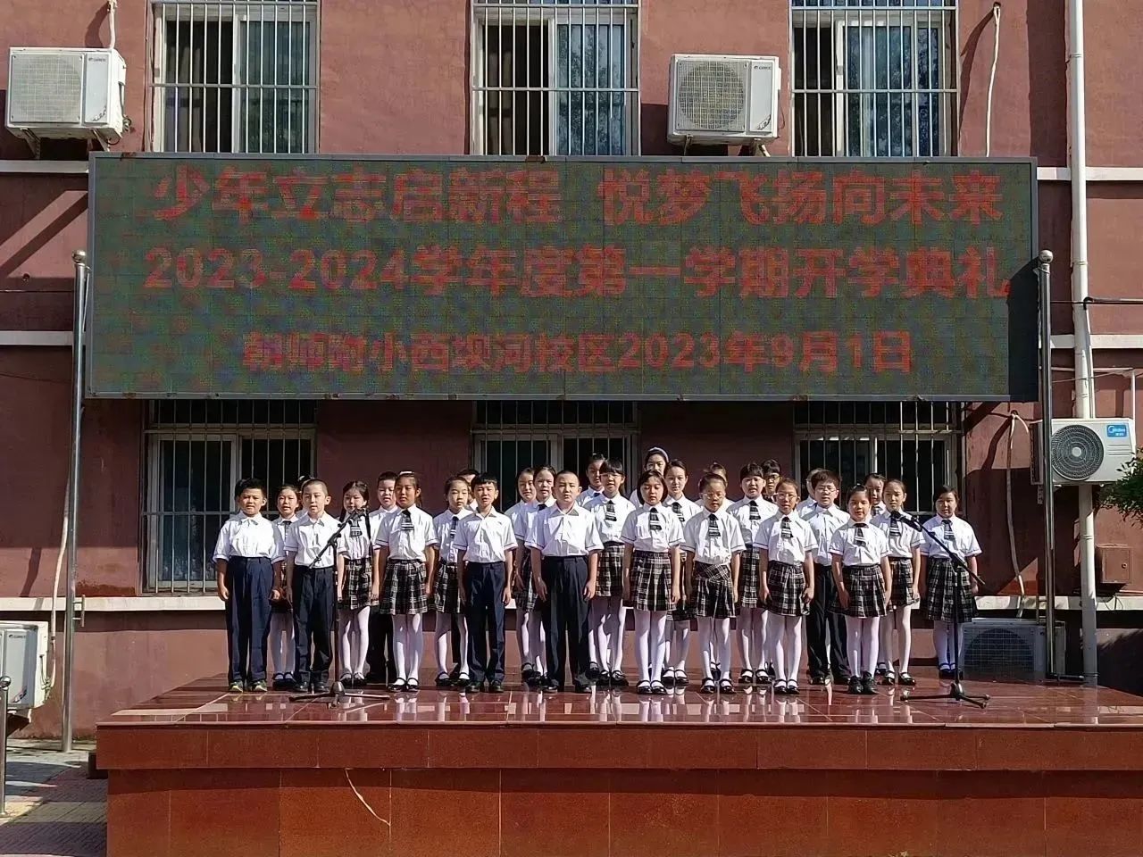和平街校区召开了以“少年立志启新程 悦梦飞扬向未来”为主题的2023-2024学年第一学期开学典礼,朝师附小教育集团王红梅校长致辞。王校长给同学们带来四条新学期目标与行动建议:锻炼强健体魄、塑造美好心灵、课堂学好知识、课外增长见识……鼓励同学们一起加油,开启精彩新学年。师生代表抒发了对新学期的憧憬,快板表演表达了对祖国的热爱,一年级同学们还进行了好习惯儿歌手语展示,仪式感直接拉满~