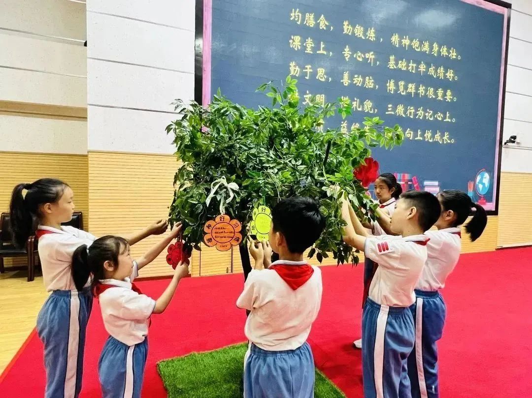 太阳星城校区举行了“少年立志启新程 悦梦飞扬向未来”开学典礼,仪式上全体同学仰望国旗,在嘹亮的国歌声中迎接新学期。太阳星城校区主管任勇洋校长为孩子们送上新学期寄语,一年级小同学以童谣传唱“附小三微礼仪歌”的形式带动周边的人遵守规则,高年级哥哥、姐姐也为新同学送上了童话绘本有益书籍。典礼上全体同学播种下好习惯,励志让“好习惯之花”开满 “悦成长之树”,身体力行践行文明礼仪。